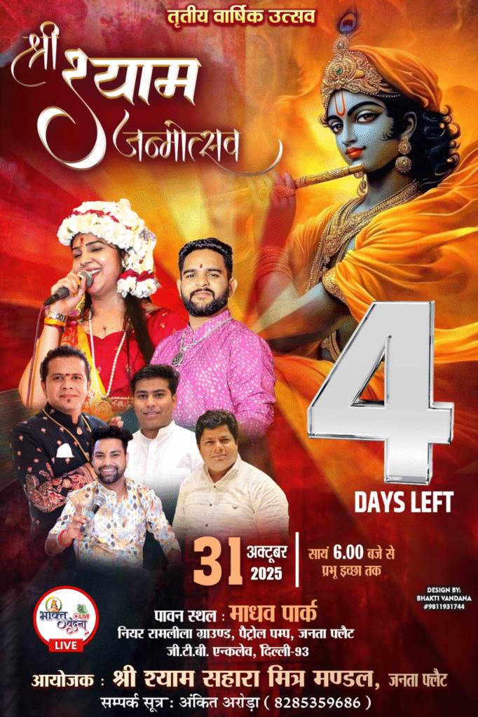 श्री श्याम सहारा मित्र मण्डल द्वारा 31 अक्टूबर को भव्य श्री श्याम जन्मोत्सव का आयोजन रिधि दर्पण संवाददाता – दिल्ली। भक्ति, श्रद्धा और उल्लास से ओतप्रोत वातावरण में