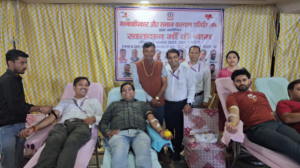 मानवाधिकार और समाज कल्याण समिति द्वारा लगाया गया रक्तदान शिविर देश की जानी-मानी संस्था मानवाधिकार और समाज कल्याण समिति ने रक्तदान शिविर लगाय!